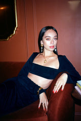 Loving the style? Try the Ada Crystal Statement Earrings in Emerald Green and Silver.