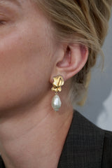 The Baroque Pearl Minis are petite dangling earrings comprised of sculptural Molten Gold and freshwater pearls. Pair them with your favorite tee or sweater for daytime, and show them off in the evening with your hair tied back.