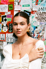 To maintain shine, avoid contact with water, perfumes, hair products and harsh chemicals. We recommend removing your gold-plated jewelry while bathing, handwashing or exercising. Clean with a soft cloth after wear and store in a cool, dry place in the pouch and box we provide. If your jewelry needs extra cleaning, wipe with a damp cloth. Be sure to dry fully.