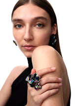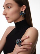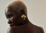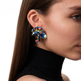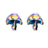 The Delphinium Earrings are dimensional, folded stud earrings. Their free-form shape is molded by hand and finished with an iridescent Oil Slick finish, blurring the line between jewelry and sculpture.