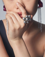 The Bubble Ring is a chunky cocktail ring with a bold, bubbled design. This sculptural ring is the perfect statement piece for your decadent digits.