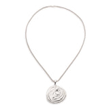 Inspired by silk rosettes, the Rosette Pendant features an organic swirl of silky silver suspended from a chunky silver box chain. Designed with versatility in mind, the Rosette Pendant Necklace seamlessly complements any outfit, whether it's a casual day ensemble or an elegant evening gown.