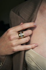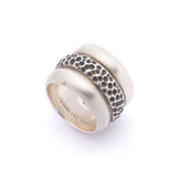 The Trinity Band Ring features three contrasting layers for the perfect stacked look all in one ring. The outside bands have a shiny Mirror Finish and are set against the pointelist-textured center band. The Trinity Band Ring has a smooth, polished interior for a chunky look without sacrificing comfort. Wear it alone to let it shine, or layer up it up with your other favorite rings.