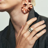 The Trinity Ring is also available in shiny Sterling Silver, Gold, and Two Tone Gold & Silver. Pair it with the Trinity Hoops to complete the look.