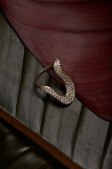 The Pavé Diamond Wave Ring reinvents our signature Serpentine style in elevated materials. This luxurious ring is cast in 18K White Gold and features brilliant white diamonds, each intricately set to follow the ring's fluid design.