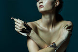 The Magma Hand Cuff is a unique, statement-making piece to add to your jewelry arsenal. Pair it with the Helmet Rings or your favorite ring stack to create the look of a full glove.