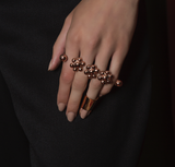 The Multi-finger Bubble Ring slips over four fingers and features metal bubble-like shapes between each finger. This sculptural multi-finger ring is the perfect statement piece for your decadent digits.