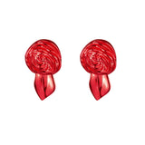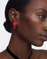 The Rosette Mini Earrings are metallic red stud earrings inspired by the delicate textures of silk rosettes.