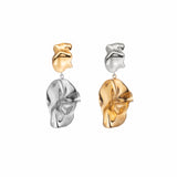 The Fold Minis are two-tone earrings with a folded design and high-polished Molten surface texture.