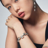 Pair the Serpentine Infinity Bracelet with the Baroque Pearl Mini Earrings in Sterling Silver.