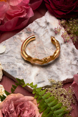 The Molten Cuff envelops your wrist in molten gold. The matte Satin texture makes a subtle statement. Versatile for day or night!