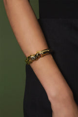 The Molten Cuff is a handcrafted cuff with contrasting textures. The Molten Cuff's ultra-shiny Mirror Finish highlights its dimensional, sculptural texture.