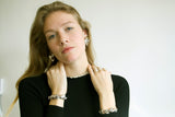 To maintain shine, avoid contact with water, perfumes, hair products and harsh chemicals. We recommend removing your gold-plated jewelry while bathing, handwashing or exercising. Clean with a soft cloth after wear and store in a cool, dry place in the pouch and box we provide. If your jewelry needs extra cleaning, wipe with a damp cloth. Be sure to dry fully.