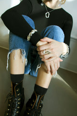 We recommend storing your sterling silver and solid gold jewelry in the pouch and box we provide or an airtight container to prevent tarnishing over time. Clean with a soft cloth or silver polishing cloth.