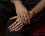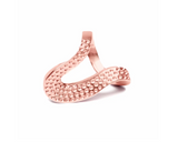 The Lithop Wave Ring is a winding serpentine-style ring. The pointillist Lithop Texture contrasts the smooth, high-polished finish. Wear it alone on your index or middle finger to let it shine, or pair it with Ridge Rings for a layered look.