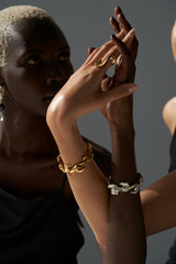 To maintain shine, avoid contact with water, perfumes, hair products and harsh chemicals. We recommend removing your gold-plated jewelry while bathing, handwashing or exercising. Clean with a soft cloth after wear and store in a cool, dry place in the pouch and box we provide. If your jewelry needs extra cleaning, wipe with a damp cloth. Be sure to dry fully.