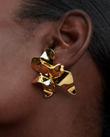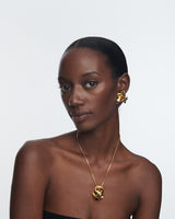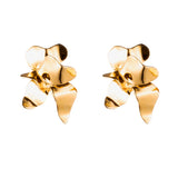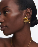 The Lotus Stud Earrings are dimensional, gold-plated stud earrings. Their free-form shape is molded by hand, blurring the line between jewelry and sculpture.