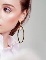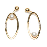 The Pearl Ellipse Earrings are elegant oval drop earrings with yin and yang pearls. These earrings feature a sleek high-polished Mirror finish with textured details and white pearls.