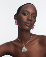The Bellmer Ball Earrings showcase an exquisite design in Silver and Pink. These sterling silver and hand-painted enamel earrings exude sophistication with their intricate metallic setting and captivating ball-shaped charm.