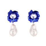 Lola Crystal Baroque Pearl Drop Earrings | Cobalt Blue