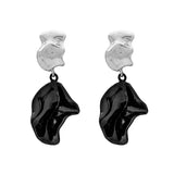 The Fold Minis are two-tone earrings with a folded design and high-polished Molten surface texture. Cast in sterling silver, these earrings are finished with black ceramic.