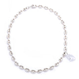 Sterling silver chain necklace in a crafted mariner chain. This necklace features a single angular crystal.