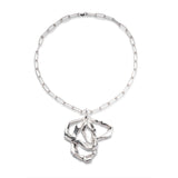 The XL Molten Ribbon Pedant is an oversized sculptural pendant necklace in shiny, polished silver with a long chain necklace.