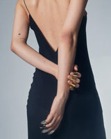 This fingertip ring adds a striking metallic touch to your look while showcasing your best nail art. Don't be alarmed if you're tempted to do a lot of over-dramatic pointing or finger-tapping when wearing your Helmet Ring.