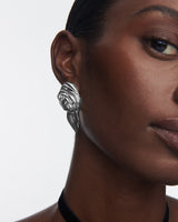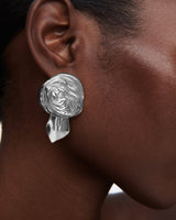 The Rosette Earrings are sterling silver statement earrings inspired by the delicate textures of silk flowers.