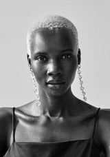 The Midi Lucite Drip Earrings are lightweight, dangling earrings that feature a Molten Silver stud with dangling Lucite beads. The clear, sculptural shape of the Lucite accents the hand-carved Molten studs. Wear them during the day with hair down and a casual top; transition to the evening by tying your hair up to elongate your neck and highlight these dangling earrings.