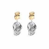 The Fold Minis are two-tone earrings with a folded design and high-polished Molten surface texture.