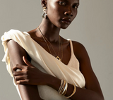 We recommend storing your sterling silver and solid gold jewelry in the pouch and box we provide or an airtight container to prevent tarnishing over time. Clean with a soft cloth or silver polishing cloth.