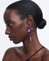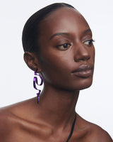 The Allegro Ribbon Earrings are sculptural statement earrings featuring airy twists and spirals in metallic purple.