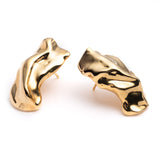 The Molten Stud Earrings feature the hand-carved Molten texture, reflective of fluid, melting metal. The stud earrings lie somewhere between jewelry and sculpture. Their shiny Mirror Finish adds dimension and richness to the Molten texture.