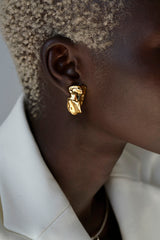 With a Molten texture that melts our hearts, these stud earrings add a sculptural twist on stud earrings. The Molten Stud earrings are petite and lightweight for all-day wear. Keep them in focus with your hair up and dewy, fresh makeup.