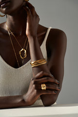 To maintain shine, avoid contact with water, perfumes, hair products and harsh chemicals. We recommend removing your gold-plated jewelry while bathing, handwashing or exercising. Clean with a soft cloth after wear and store in a cool, dry place in the pouch and box we provide. If your jewelry needs extra cleaning, wipe with a damp cloth. Be sure to dry fully.